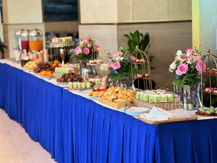 Set-up sang trọng, đa dạng bánh Âu – Á, nước uống cao cấp, phù hợp hội nghị VIP và các sự kiện ra mắt sản phẩm.